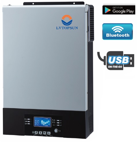 Solarix Topsun 5KVA 48VDC 100A Inverter- Pure Sine Wave, Solar Inverter, Max Watt Output 5.5kW, High Voltage100A MPPT Solar Charge Controller, Bluetooth Mobile Monitoring for Android Only USB/RS232/RS485/Bluetooth Communication Interface,48VDC, Floating Charge Voltage 54VDC, Overcharge Protection 66VDC, Retail Box , 1 Year Limited Warranty